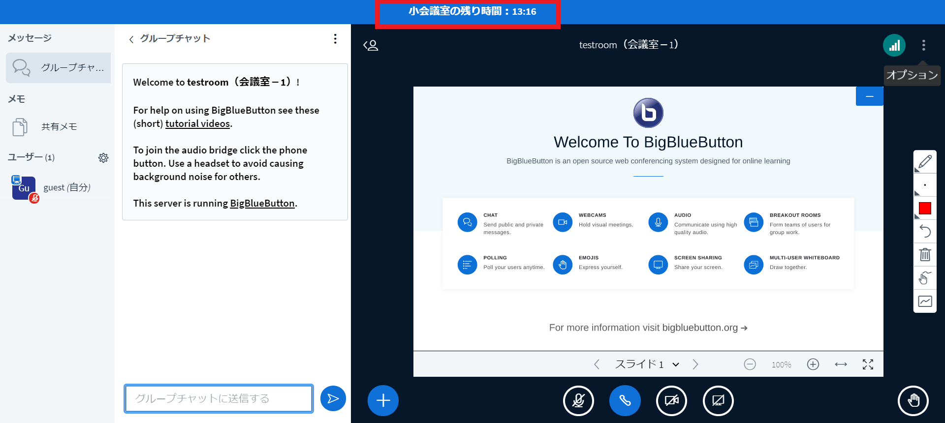 この章では、BigBlueButtonの小会議室の機能について解説します。