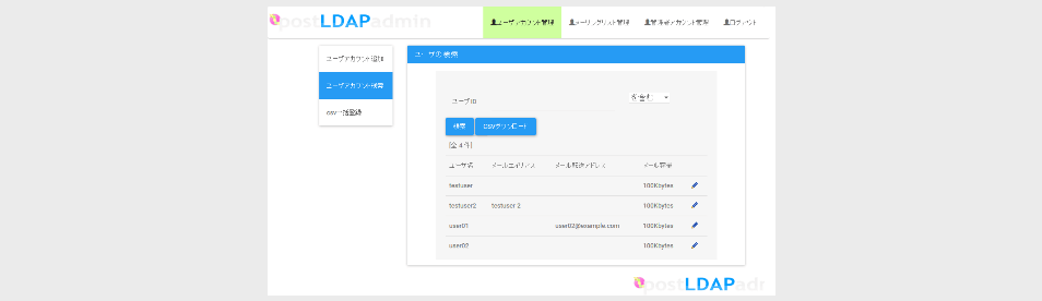postLDAPadmin〜メールサーバのユーザ管理用GUI〜- postLDAPadminとは、デージーネットで開発したメールサーバのユーザ設定をWebUIで管理できるソフトウェアです。