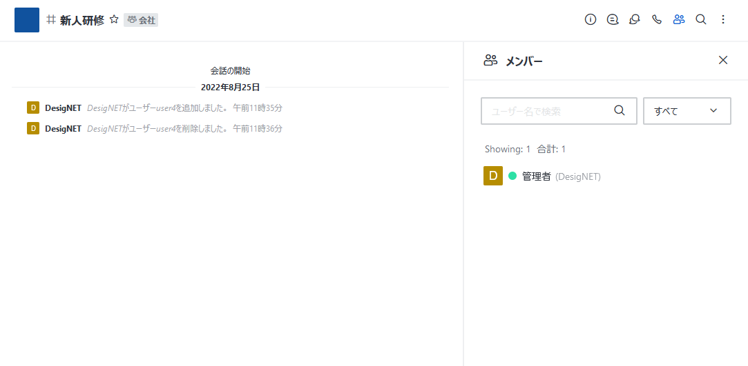 自動参加機能が無効な場合はチャンネルにメンバーは追加されません。